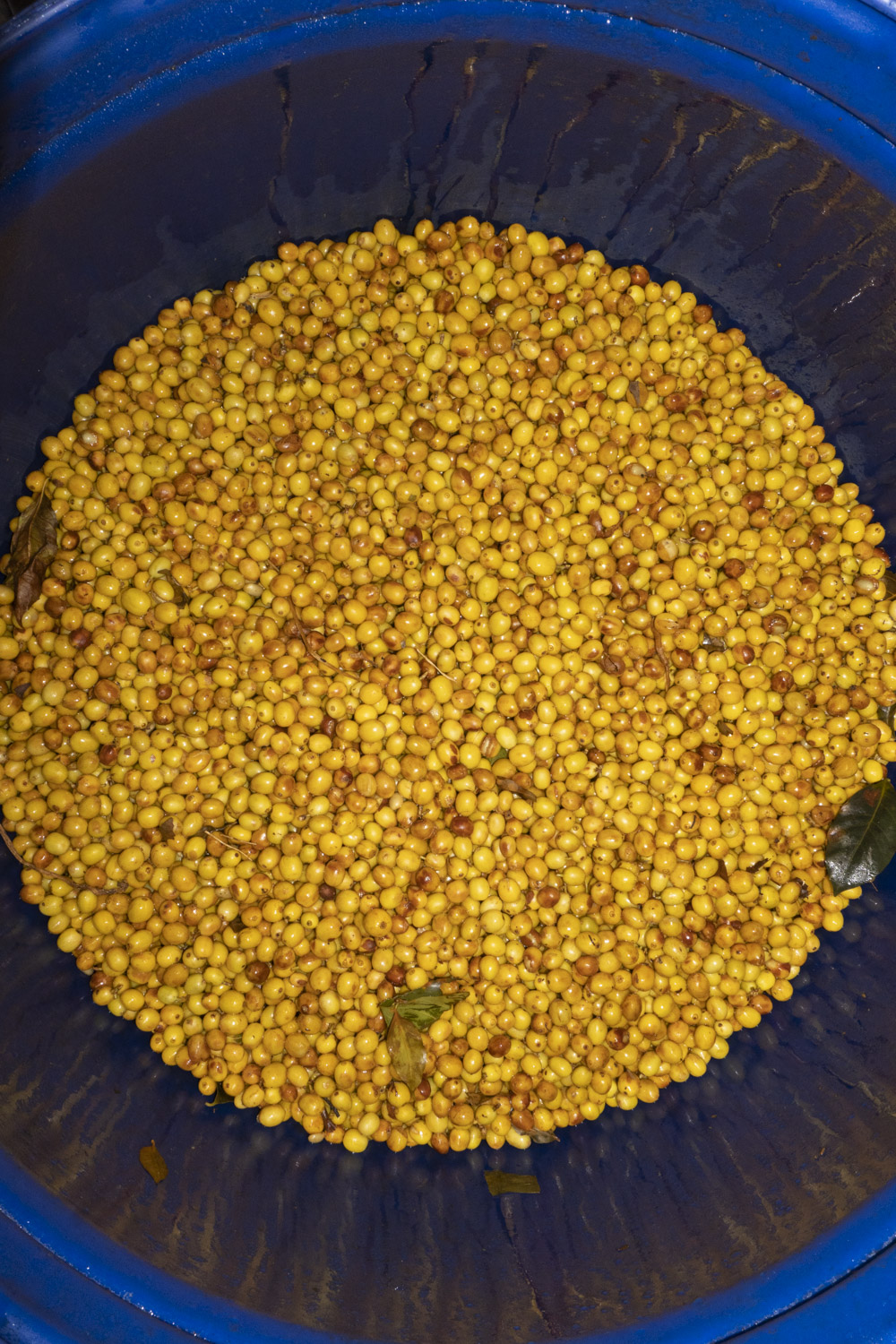 La madurez de la cereza se monitoreó de cerca durante toda la cosecha, mientras que bacterias ácido lácticas endémicas (LAB) fueron precultivadas utilizando mosto de la variedad local Maracaturra. En su punto óptimo de maduración (23° Brix), las cerezas de Caturra Amarillo fueron cosechadas selectivamente por Don Jorge y sus hijos.